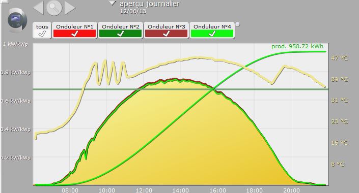 Cette installation réalisée par Midisolaire et mise en service en septembre 2011 n’a pas pu être suivie suite au dépôt de bilan de la société. Solarize a donc été retenue pour entretenir le générateur dès le mois de mars dernier.