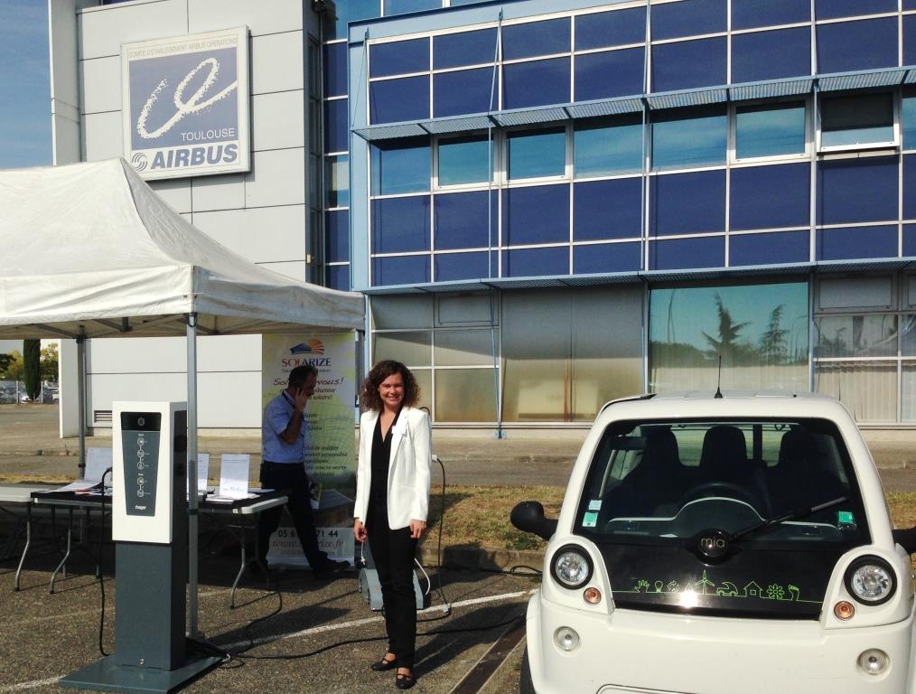 Les commissions développement durable des Comités d’entreprise d’Airbus ont organisé pour la deuxième année consécutive une journée consacrée au véhicule électrique. Les 4 octobre 2016 à Saint Martin et le 6 à Blagnac, le staff de Solarize (de gauche à droite: Guillaume Allier, Président du Groupe Allier Capital, Bruno Delas, Gérant de Solarize, Arnaud Mora, Fondateur de Freshmile et Vanessa Deniset, Assistante technico-commerciale de Solarize en bas) a pu présenter son savoir faire aux salariés d’Airbus dans une ambiance agréable et conviviale. Nous avons apprécié l’intérêt et la qualité de l’approche des personnes rencontrées.