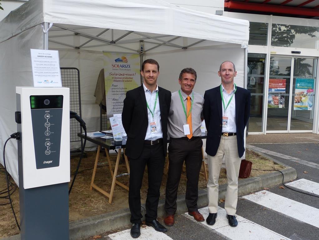 De l’installation et la maintenance du photovoltaïque et des infrastructures de recharge en passant par les outils de service à la charge pour véhicules électriques, notre offre a interpellé, salariés et entreprises. La toute dernière borne connectée double point de charge du constructeur Hager était non seulement présente, mais opérationnelle. Elle a effectué de nombreuses charges de démonstration sur la Zoé de Renault et la Mia Electric du Président d’Enercoop Midi-Pyrénées!