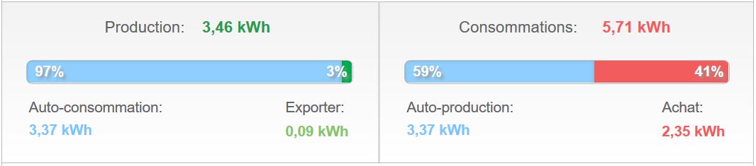 L’auto-consommation est la consommation exclusivement solaire . Elle est en rapport avec la production (exprimée en %, plus elle est grande, meilleur c’est)